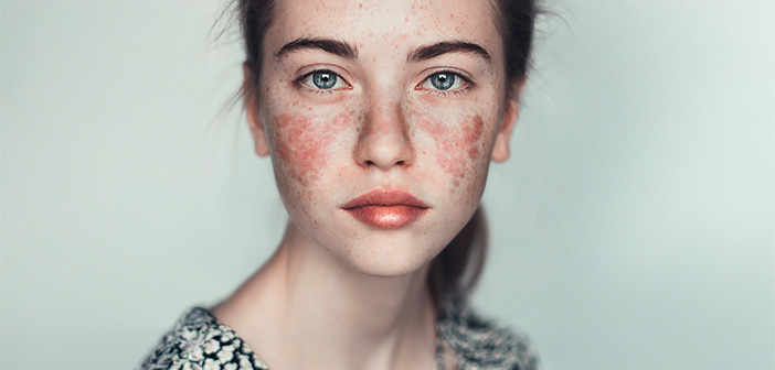 Die Krankheit beginnt oft mit Fieber, Gelenkschmerzen, permanenter Erschöpfung oder Sonnen-empfindlichkeit. Auf der Haut können sich rötliche Flecken bilden. Charakteristisch ist dabei das sogenannte Schmetterlingserythem im oberen Wangenbereich, das man früher mit einem Wolfsbiss verglich, woher wohl der Name stammt.